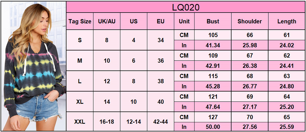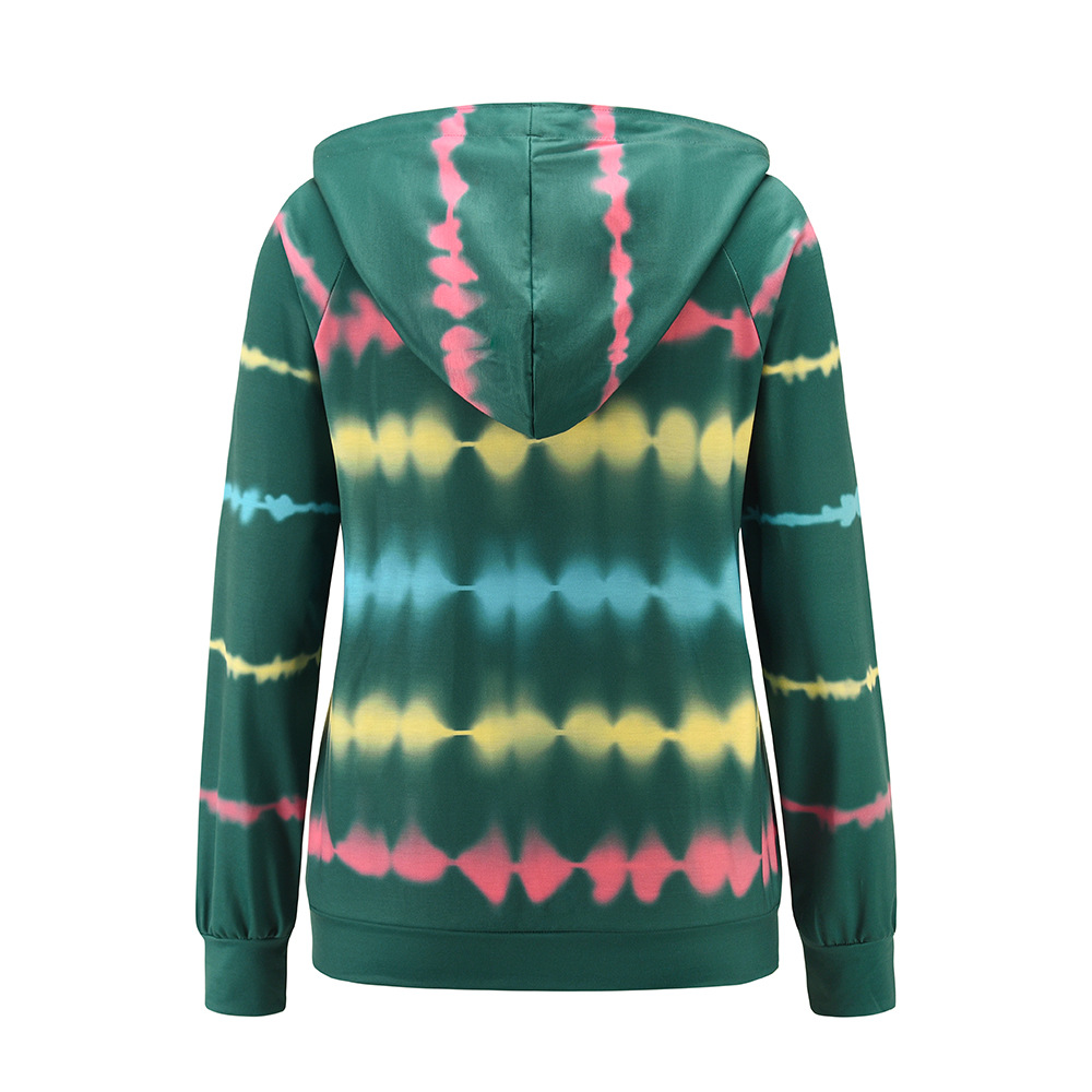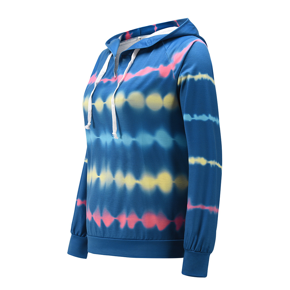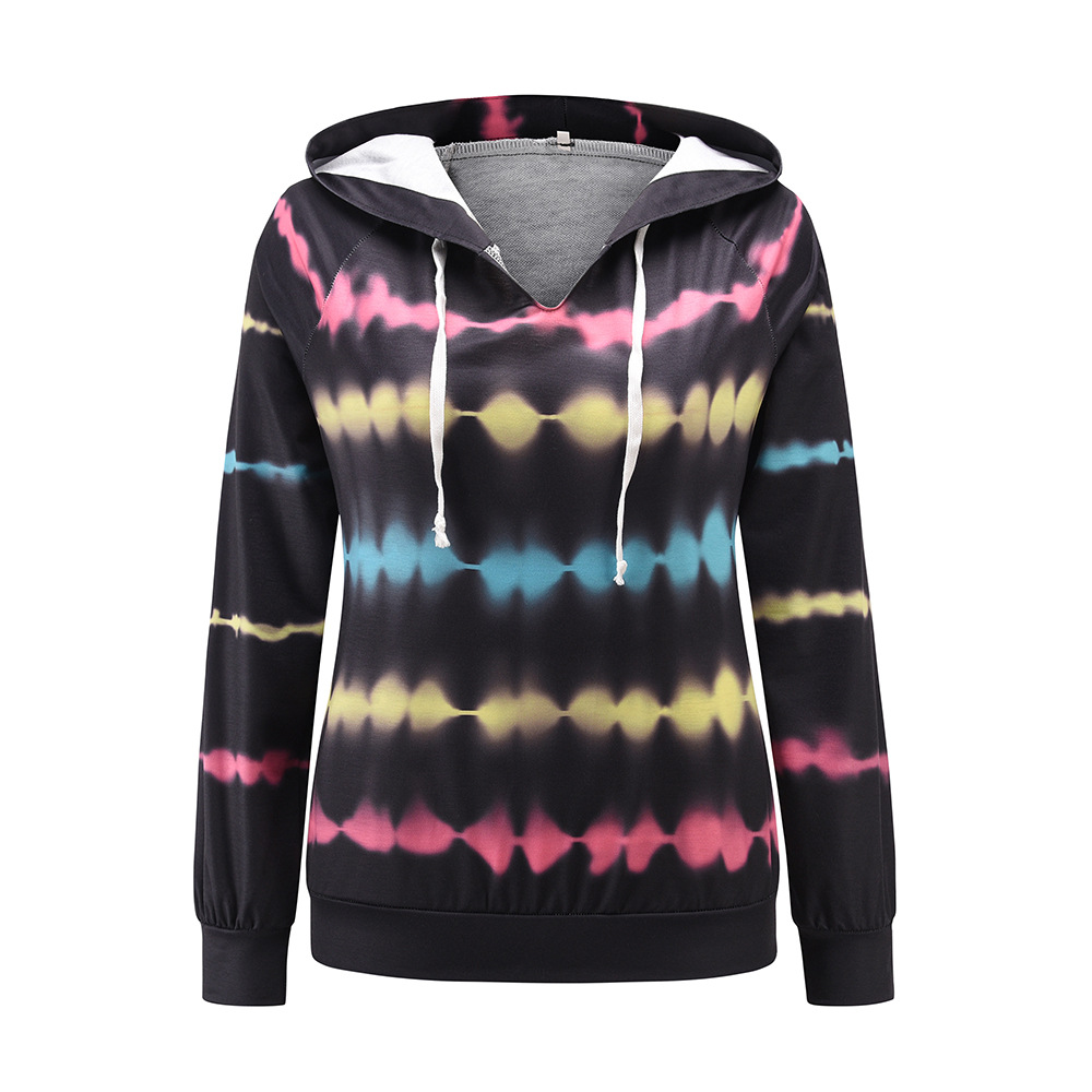 Autumn Casual Tops Heartbeat Print Hooded Sweater Tie-dye Loose Sweatshirt PQLQ020C