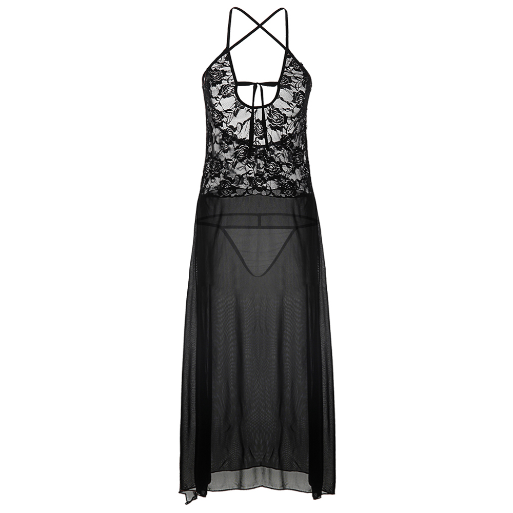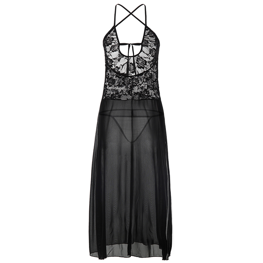 Black Lace Night Dress For Women Sexy Nightgown Lingerie PQYM7119
