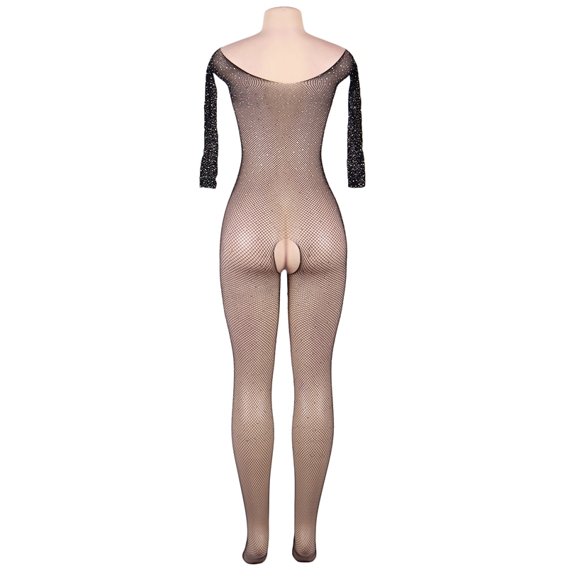 Black Open Crutch Bodystockings for Women Mesh Stockings PQH3439