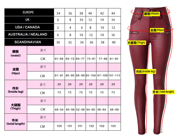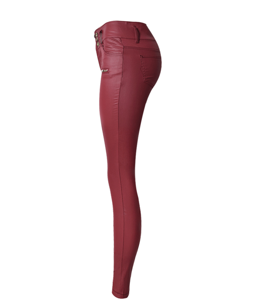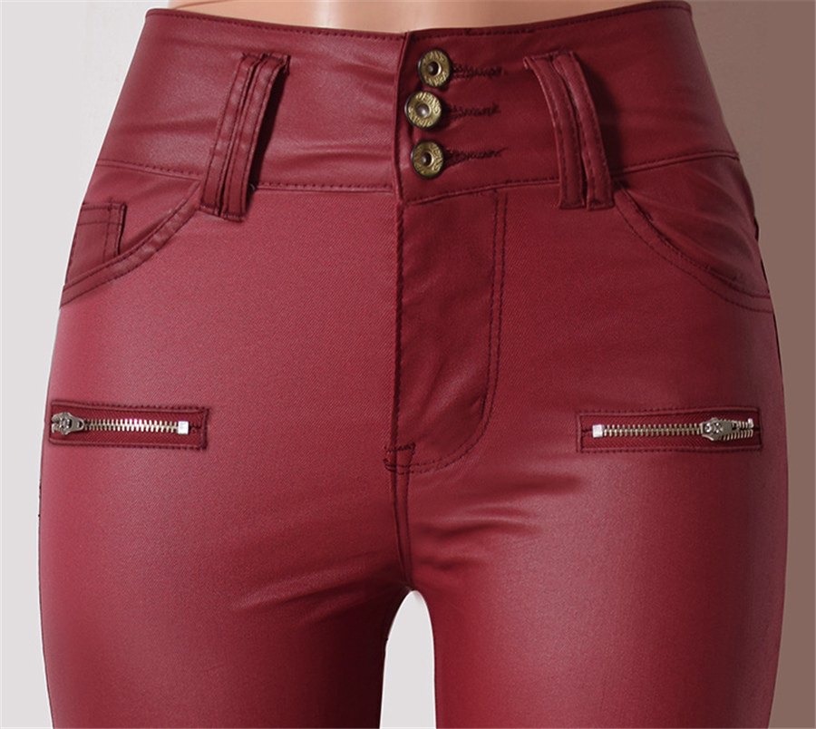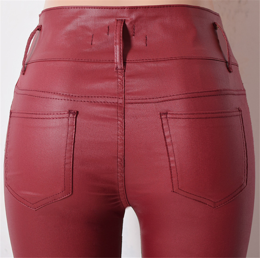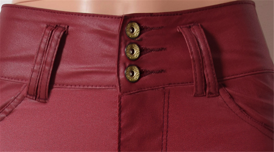 Bubble Butt Red PU Trousers High Waist Faux Leather Pencil Pants PQTOPTSL057