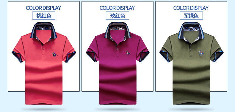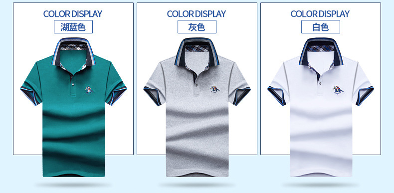 Dark Blue Polo Shirt Cotton Short Sleeve T-shirts Men Lapel Summer Tops PQLG1703A