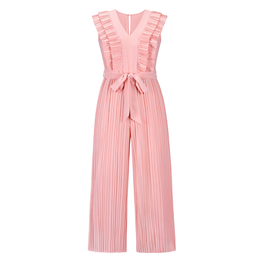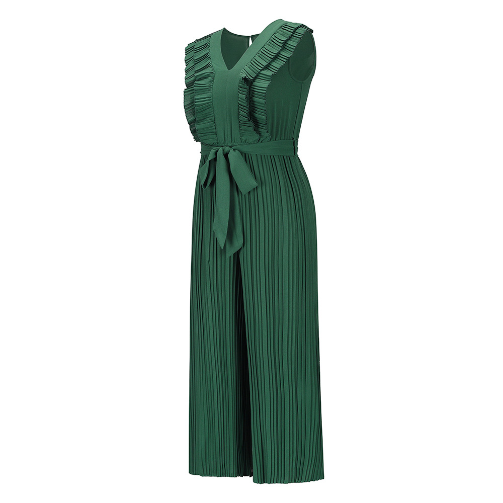 Green High Waist Pleated Jumpsuit Women Wide Leg Pants PQLQ281B