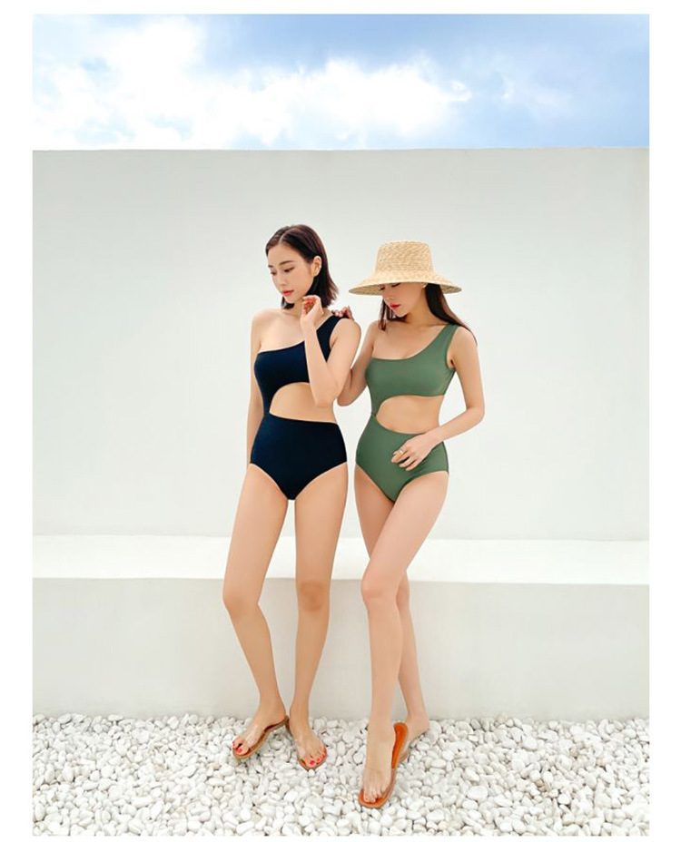 Green One Piece Swimsuit For Women Sides Cut Out Sexy Bathing Sets PQ033B