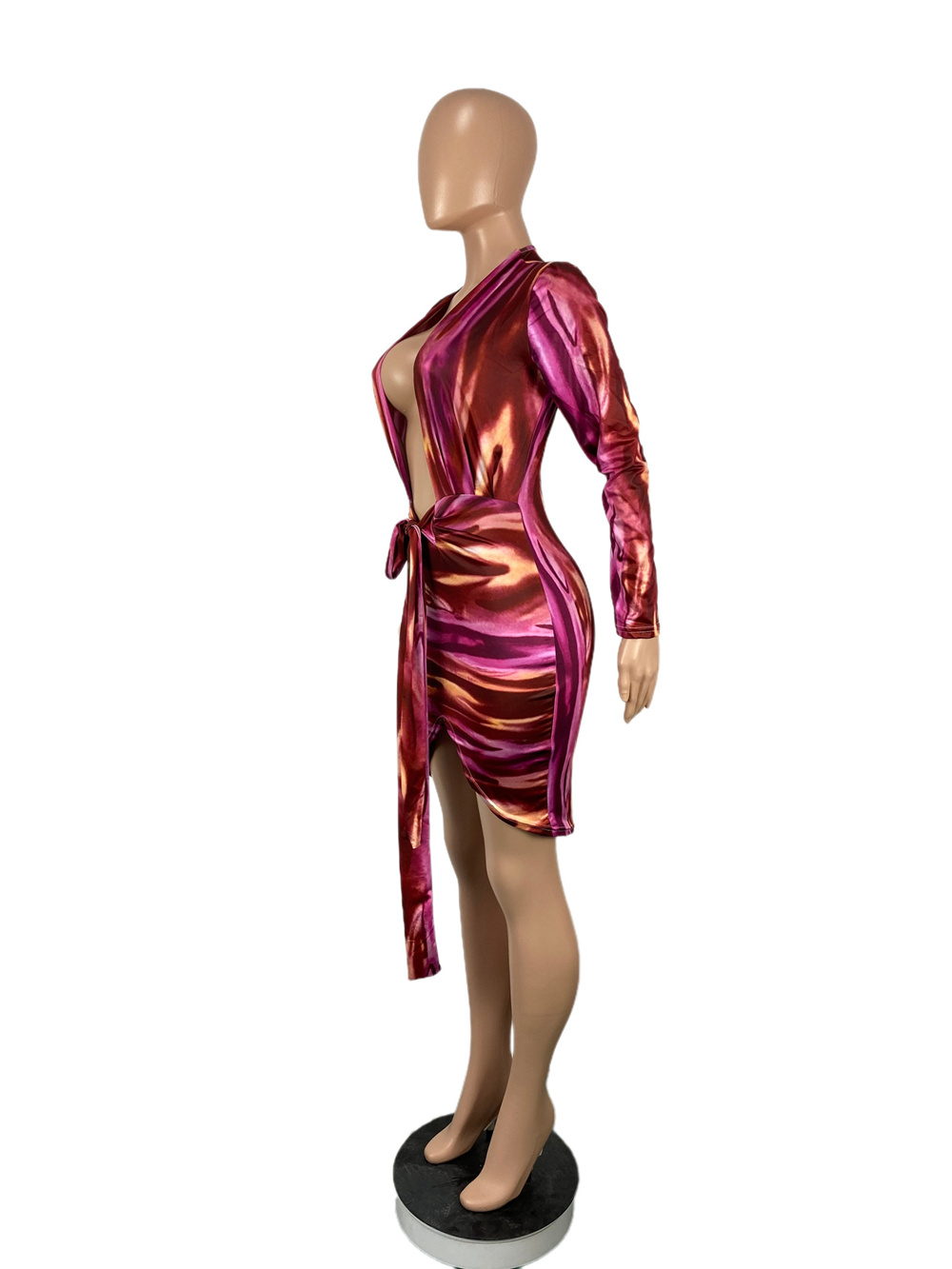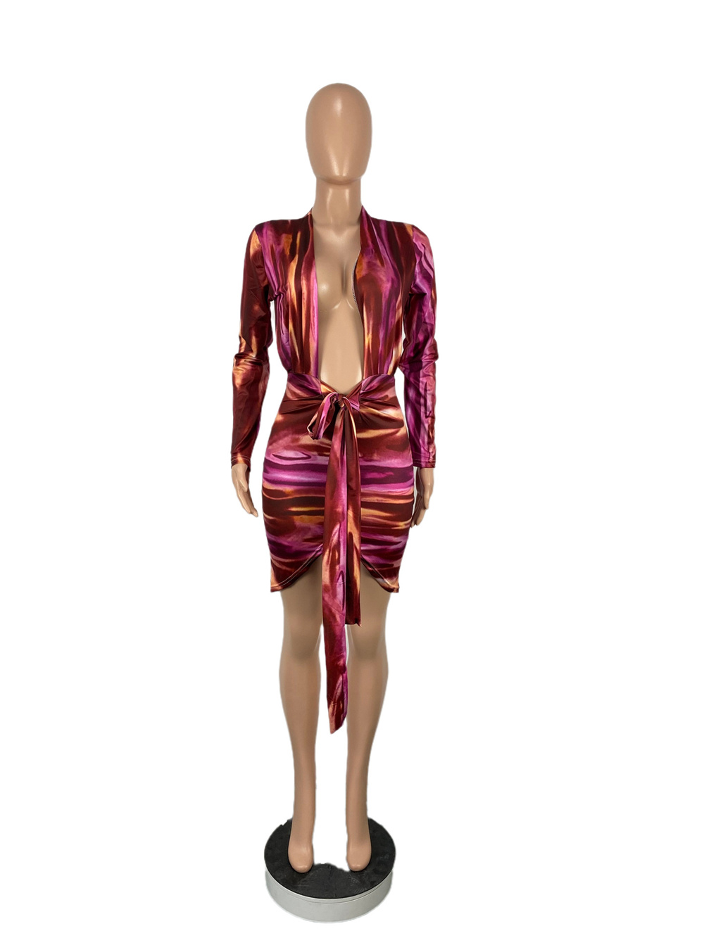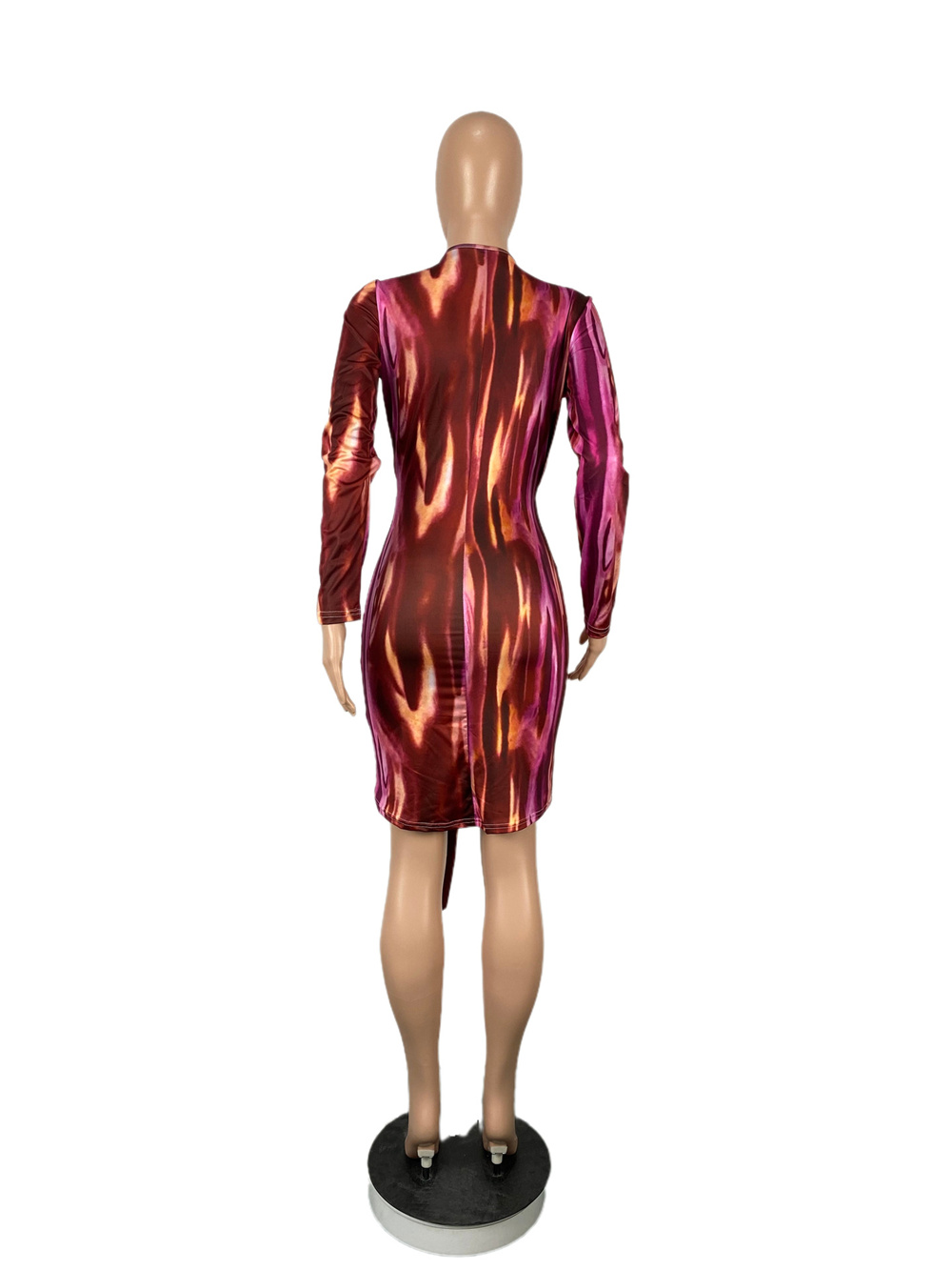 Red Sexy Deep V-neck Clubwear For Women Print Bodycon Dresses PQ1297A