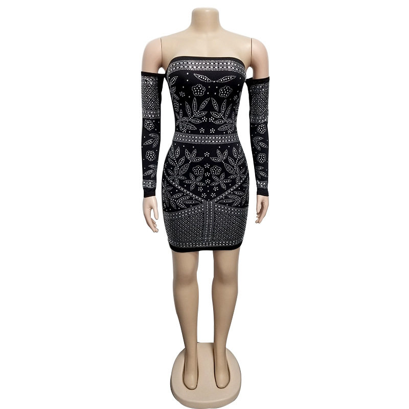 Rhinestone Off Shoulder Mini Dress Women Sequin Dresses PQ3239
