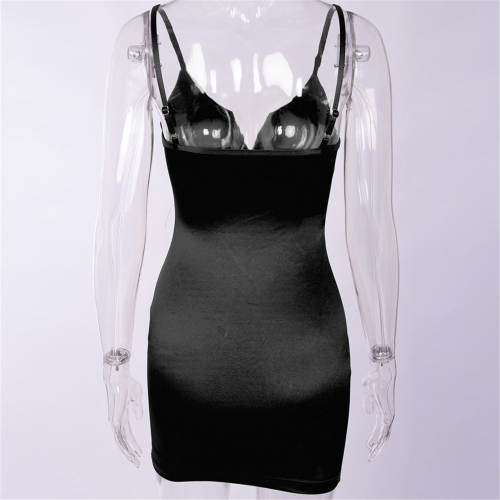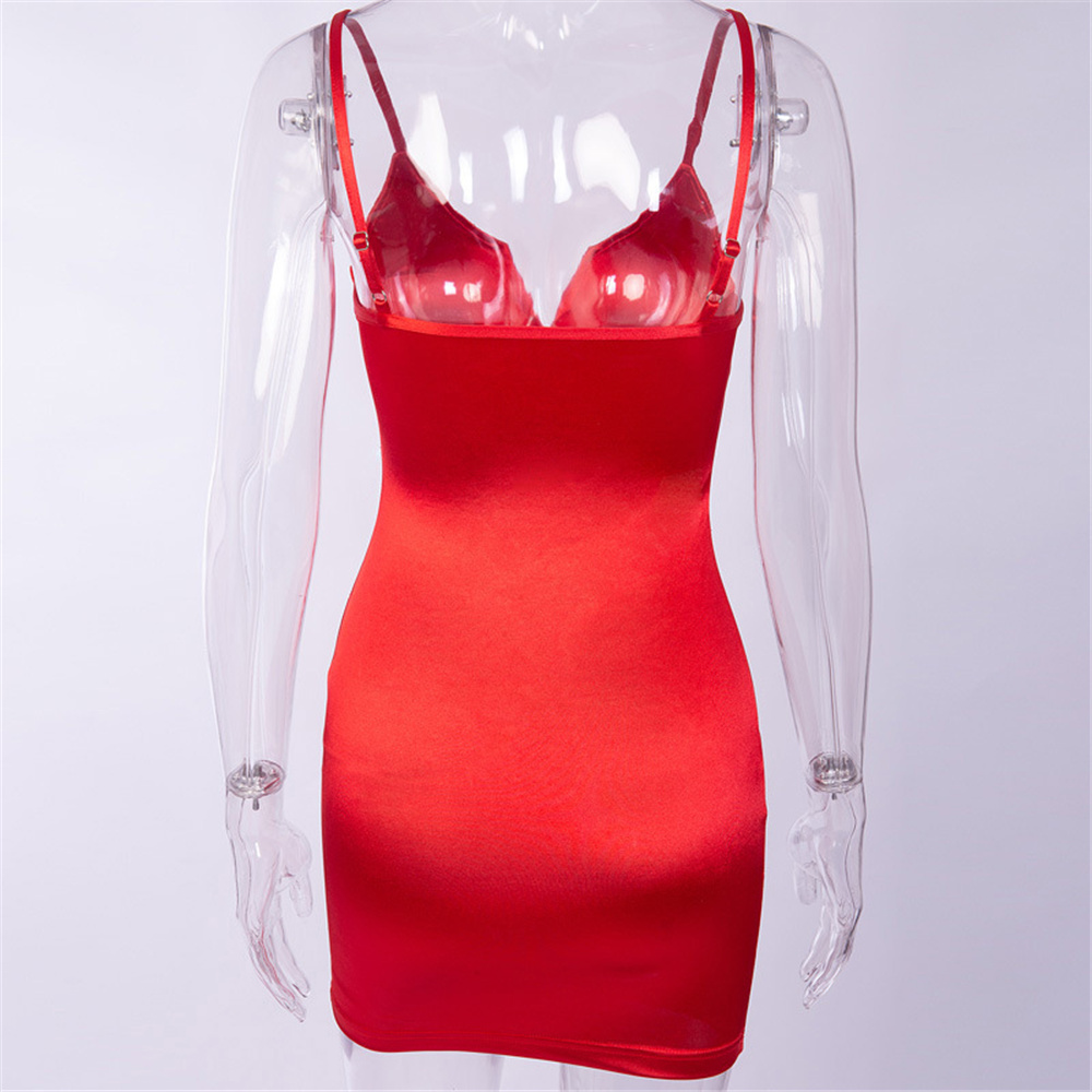 Grey Sexy Deep V-neck Evening Mini Dress Satin Club Dresses PQ81326A