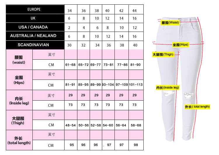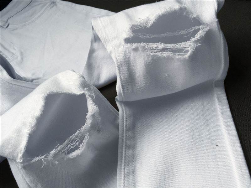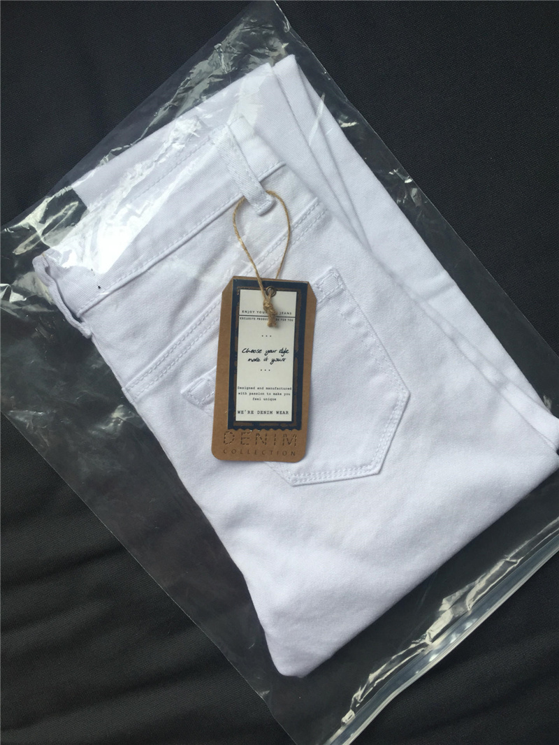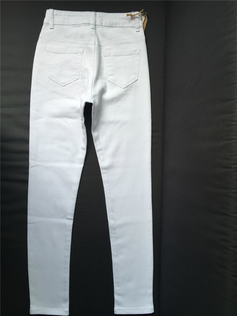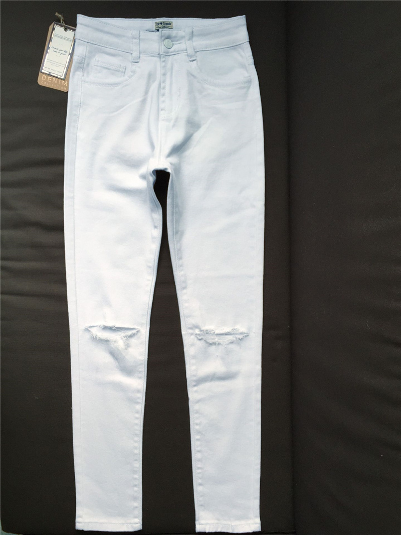 White Hight Waist Ripped Jeans For Women Skiny Denim Pants PQTOP006