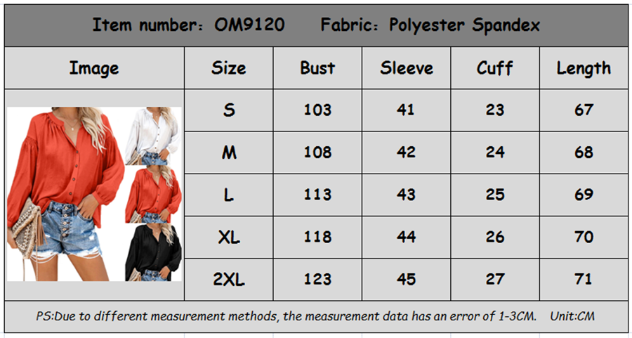 Women Loose Tops Single-breasted Long Sleeve Casual Shirt PQOM9120A