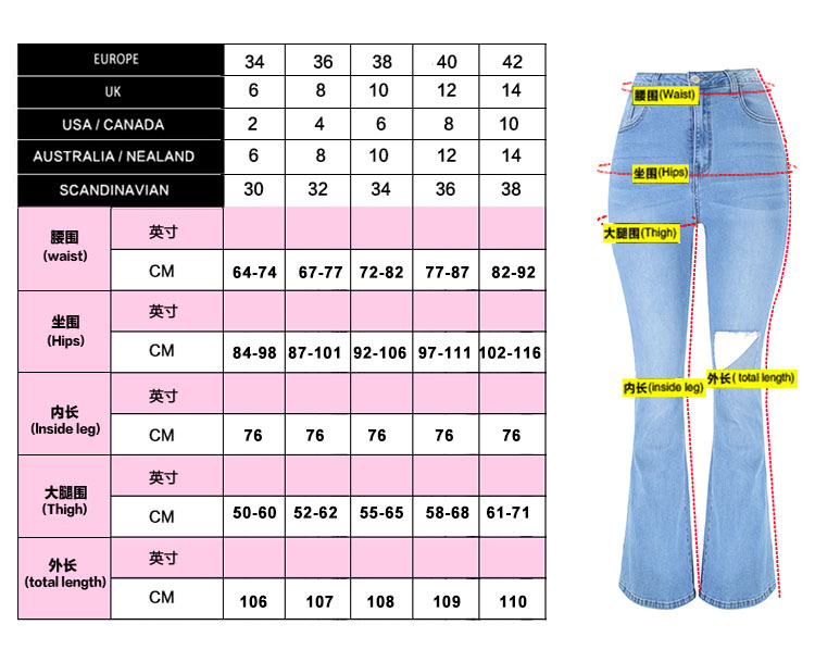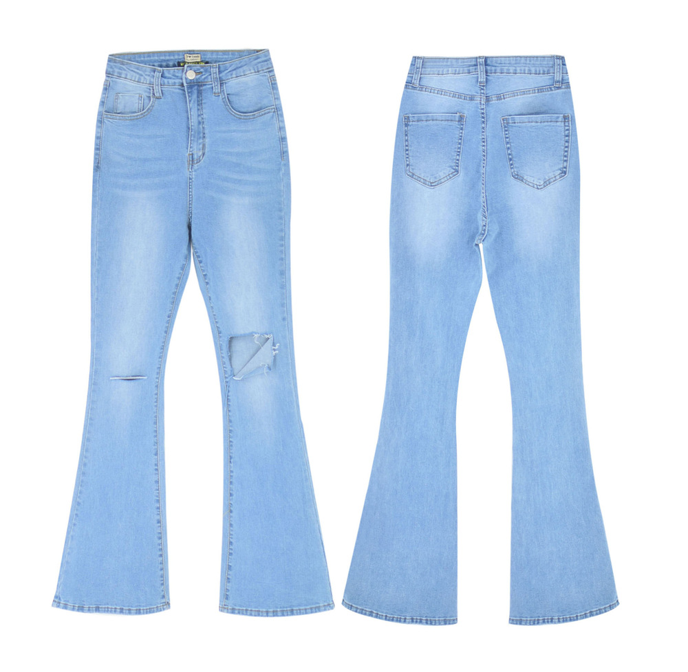 Blue Hole Denim Pants Hight Waist Ripped Jeans For Women PQTOP413