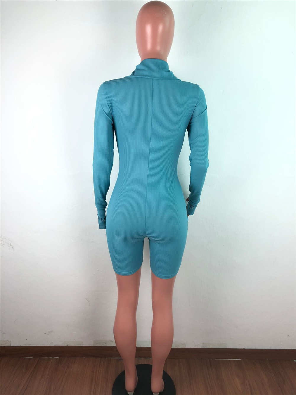 Light Yellow Embroidered Letter Print Streetwear Stretch Ribbed Slim Bodysuit PQ5015B