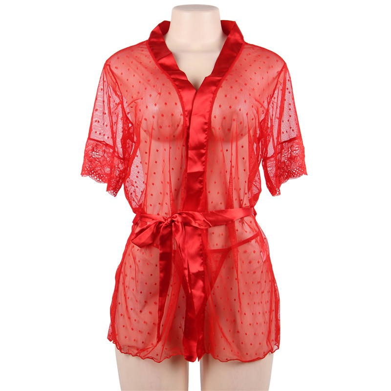 Red Mesh Sheer Lace Robe Sexy Nasty Lingerie For Women PQ80777C