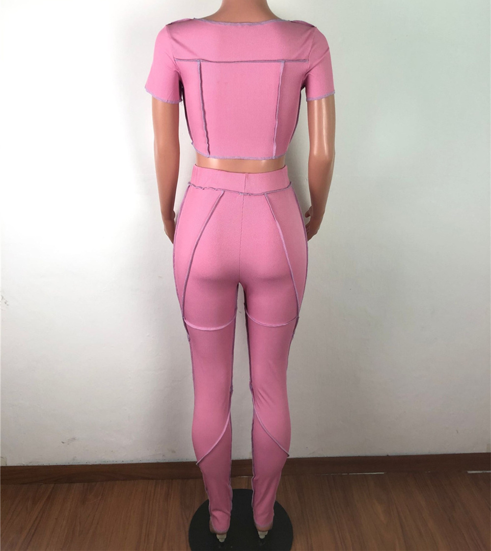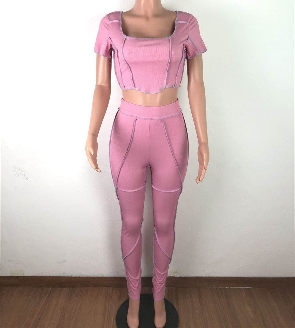 Women Fashion Street Wear Slim Short-sleeved Two Piece Suits PQAJ4106A